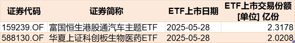目前有2只ETF披露下周上市,跟踪标的为港股通汽车和科创板生物医药。