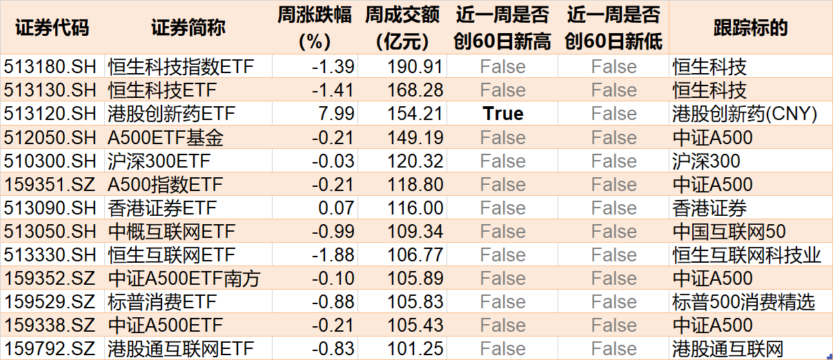 创新药板块本周走强,港股创新药ETF本周创近60日新高。